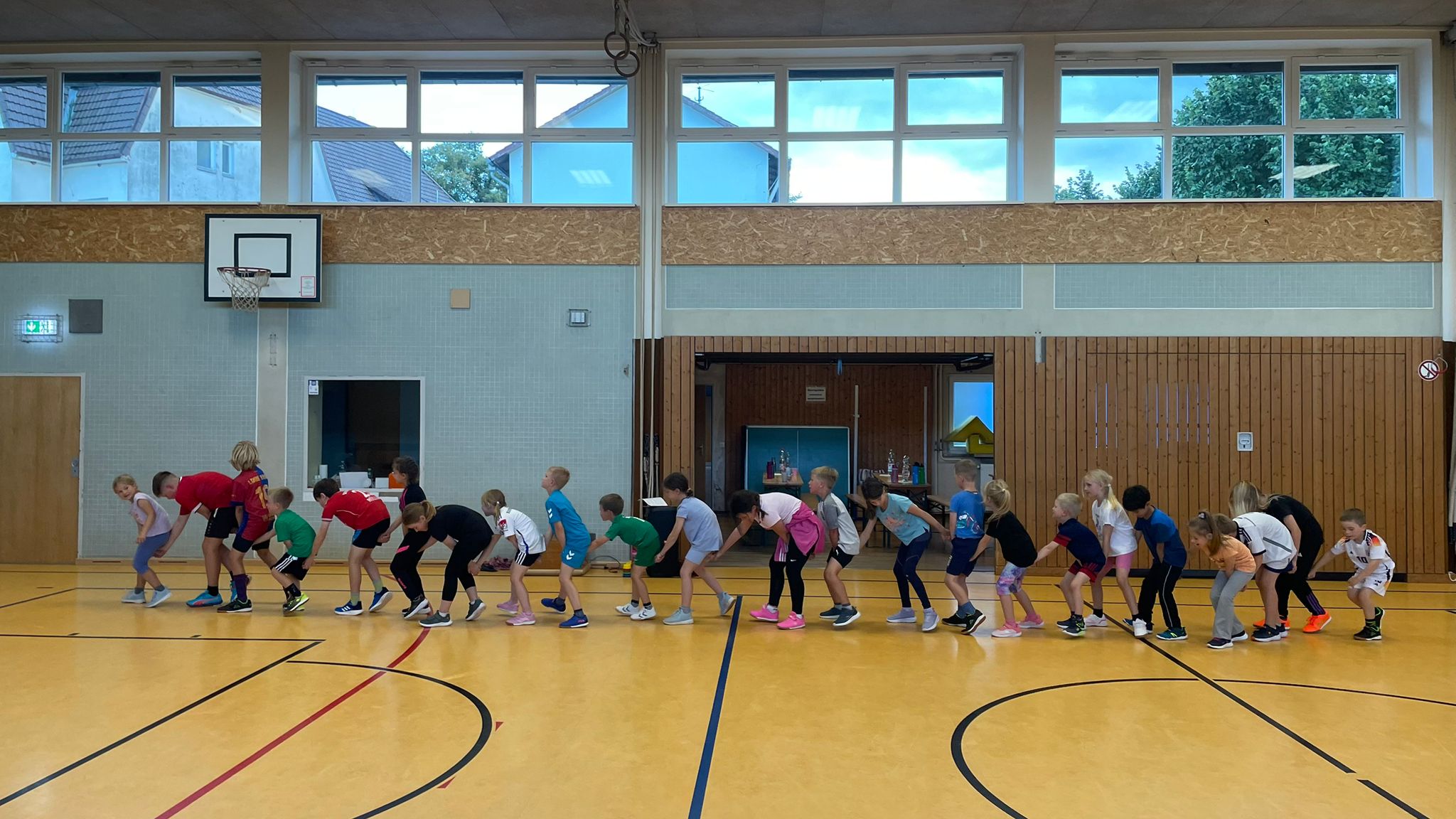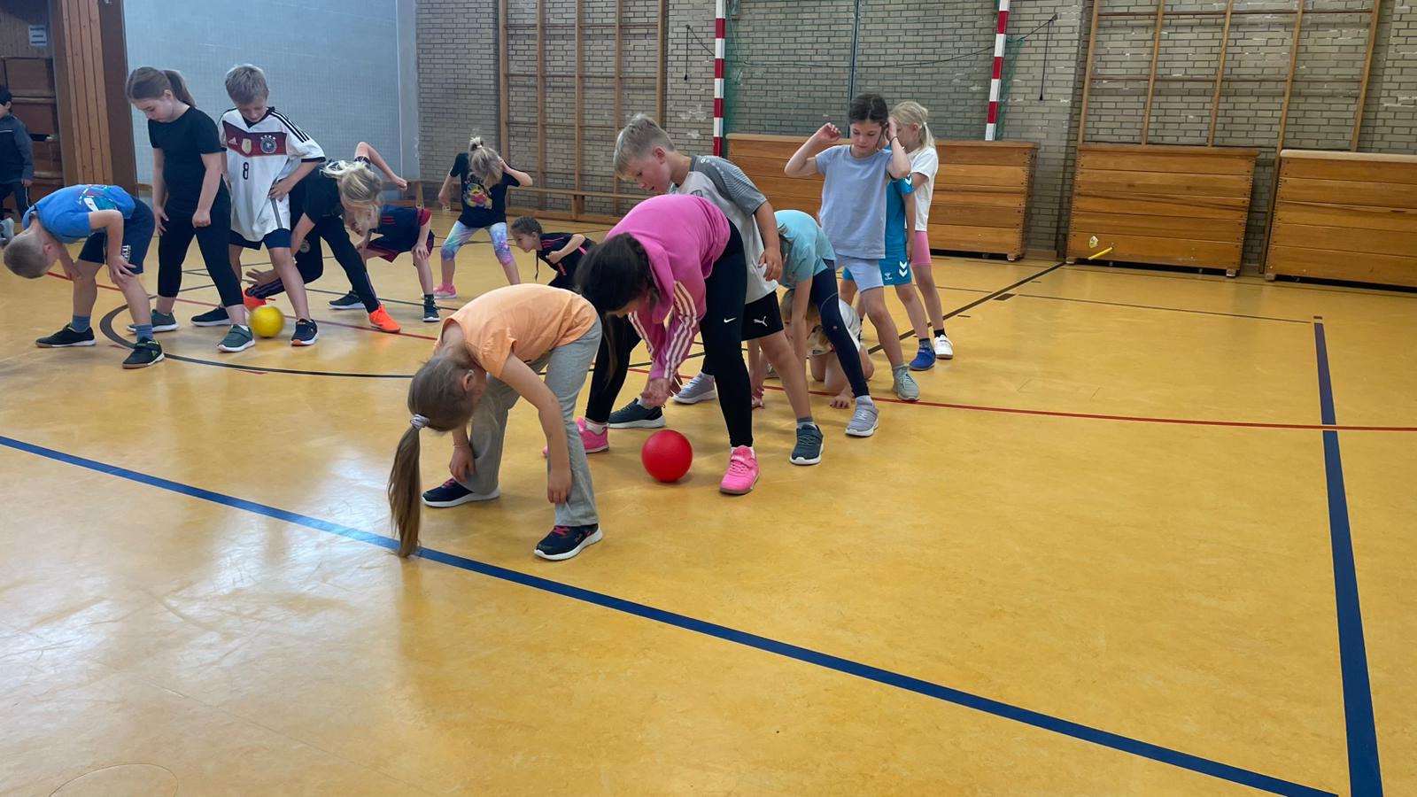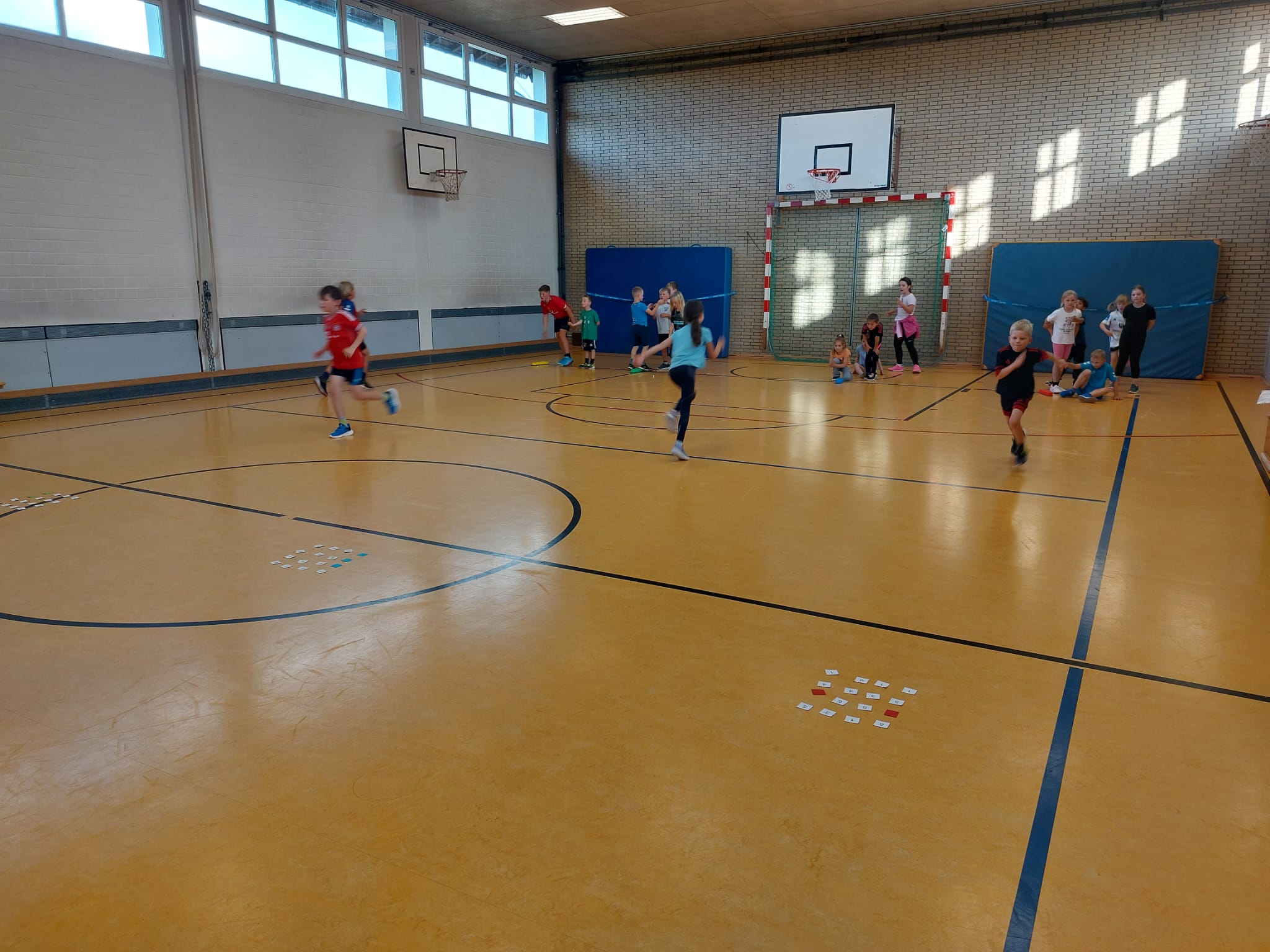 Im Anschluss startete das bunte Programm. Die Kinder wurden nicht nur körperlich gefordert, sondern mussten auch ihren Kopf einsetzen. Es standen vielfältige Aktivitäten auf dem Plan, wie Laufspiele mit Karten, Bälleklau, Würfelbingo und ein Hindernisparcours. Auch ruhigere Spiele wie Wackelgang oder Cola-Fanta-Mezzo-Mix fanden großen Anklang und förderten die Gemeinschaft und das Miteinander. Alle Teilnehmenden zeigten vollen Einsatz und hatten sichtlich Spaß an den Herausforderungen.