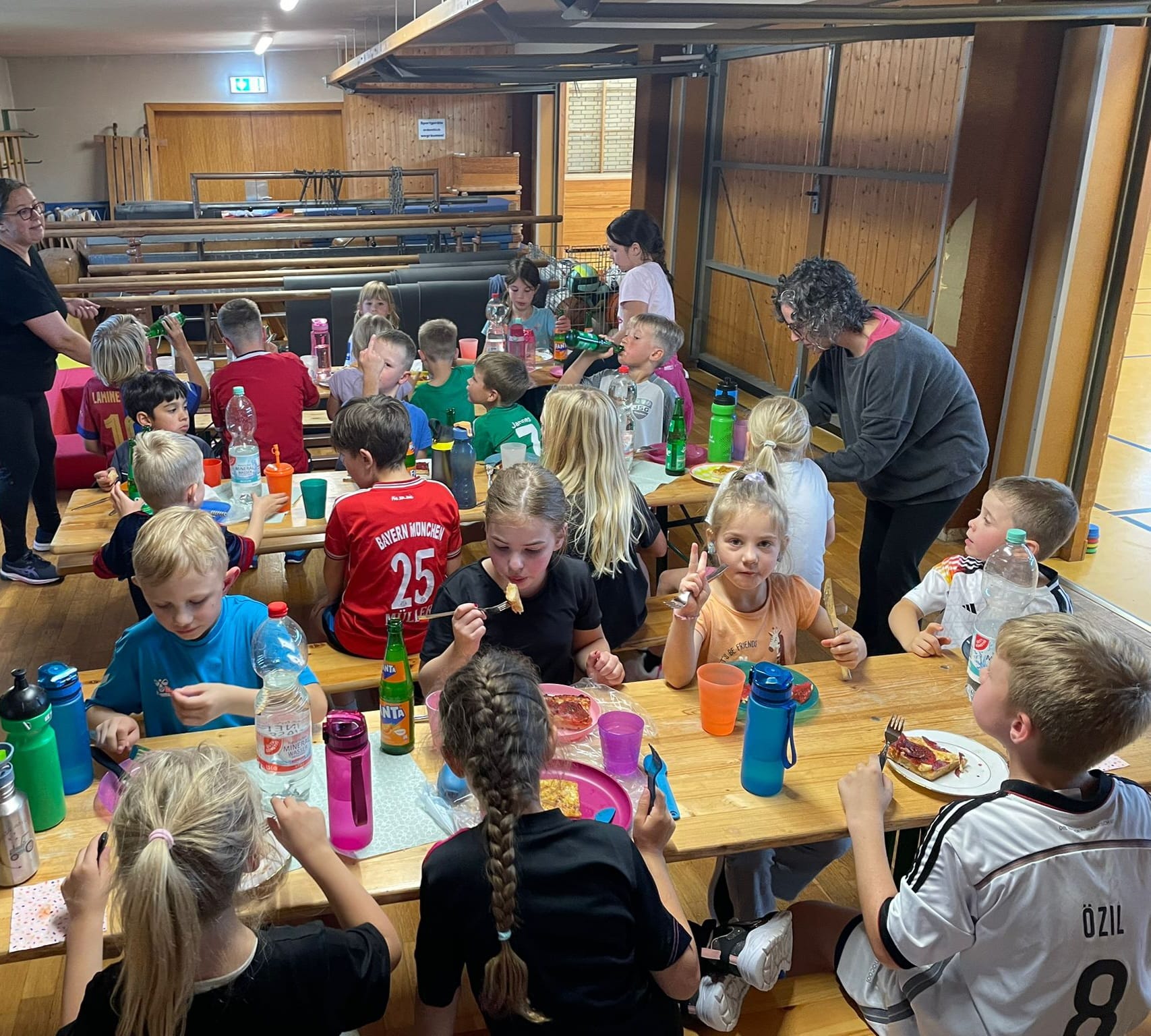 Die rund dreistündige Sporteinheit wurde lediglich von einer kleinen Snackpause unterbrochen. Viele Kinder waren überrascht, als um 18 Uhr die Pizzen geliefert wurden und das gemeinsame Abendessen begann.
